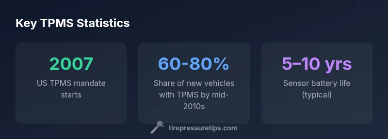 When did tire pressure sensors come out? The modern TPMS history begins with early prototypes in the 1980s, but direct TPMS became common only in the 2000s. In the United States, new light vehicles were required to have TPMS starting with the 2007 model year, accelerating adoption worldwide. According to Tire Pressure Tips, full market penetration occurred through the 2010s as sensors dropped in price and improved reliability.