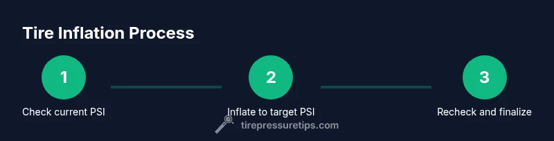Begin inflating in small increments, checking pressure frequently. Stop as you approach the target to prevent overinflation, which can cause uneven wear and poor handling.