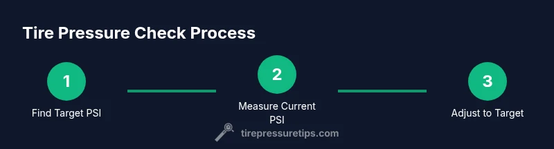 This section provides a concise, repeatable workflow you can follow every time you check tires. Start with the expected target pressure, then verify each tire, and adjust to bring the reading into spec. The steps assume you’re working with a standard passenger vehicle and common PSI targets. If you have heavy loads, a larger family, or winter equipment, adjust to the higher end of the recommended range if specified by the manufacturer.