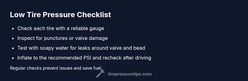 Diagnose and fix issues with low tire pressure quickly. This guide covers quick checks, a diagnostic flow, step-by-step fixes, TPMS tips, safety notes, and prevention to keep your tires properly inflated.