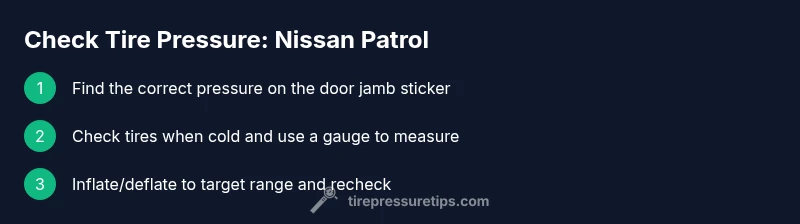 The Nissan Patrol is a large SUV that benefits from careful tyre-pressure management to improve safety and efficiency. The exact value you should run depends on tire size, load, and driving conditions; the official specification is printed on the door jamb sticker and in the owner's manual. According to Tire Pressure Tips, starting with the vehicle's recommended cold-inflation pressure is the best baseline. The Tire Pressure Tips Team emphasizes that pressures change with temperature and load, so you should verify and adjust when tires are cold and before you drive off.