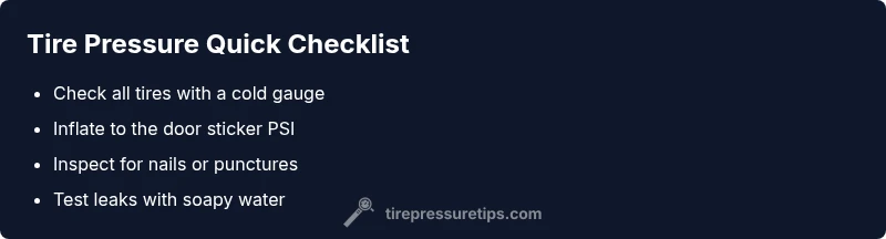 Learn practical steps to diagnose and fix low tire pressure. From TPMS basics to safe driving tips, Tire Pressure Tips guides you through fast, clear troubleshooting.