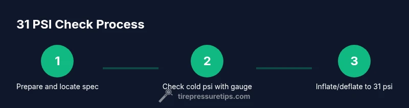 By following this guide you will learn how to set and verify tire pressure at 31 psi for your vehicle. Start with a cold tire reading, use a reliable gauge, and adjust with an air compressor or deflator until each tire reaches 31 psi. Regular checks help safety, fuel economy, and even tire wear.