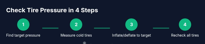 By following these steps, you'll confirm your tires are within the manufacturer’s target and adjust to tire pressure 38 psi when cold. You'll learn to locate the correct pressure, use a gauge, inflate or deflate as needed, and recheck for accuracy. Proper tire pressure improves safety, fuel efficiency, and tire wear.