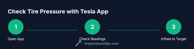 Using the Tesla app, you can monitor tire pressures in real time, view per-tire readings, and receive alerts if a tire drops below the recommended range. This guide shows how to interpret the app readouts, compare them with vehicle targets, and perform safe inflations. According to Tire Pressure Tips, regular app-based checks improve safety, efficiency, and tire life.