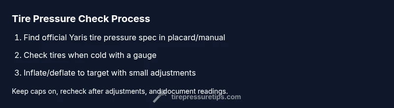 In this guide you will learn how to check, adjust, and maintain tire pressure on the Toyota Yaris, including TPMS basics, safe pressure ranges, and how temperature affects readings. By following these steps, you can improve fuel efficiency, tire wear, and safety. According to Tire Pressure Tips, starting with the correct cold PSI is essential.