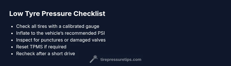 Urgent, practical troubleshooting guide for tyre pressure is too low. Learn quick checks, causes, fixes, TPMS tips, and prevention to stay safe on the road.