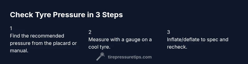 According to Tire Pressure Tips, tyre pressure on my car directly affects safety, handling, and fuel economy. In minutes you can verify the recommended pressures, check each tyre with a gauge, and adjust to spec. This quick answer outlines essential steps, the right tools, and practical tips to maintain optimal tyre pressure.