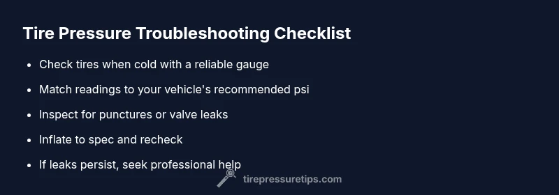 Urgent, practical troubleshooting guide to diagnose and fix tire pressure issues, including leaks, temperature effects, and TPMS faults, with a clear diagnostic flow and step-by-step fixes.