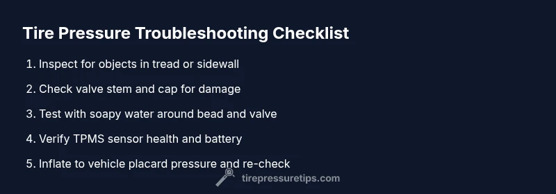 Urgent, practical guide to diagnosing why tire pressure drops after filling. Learn common causes, quick home checks, and when to seek professional help with clear, step-by-step instructions.