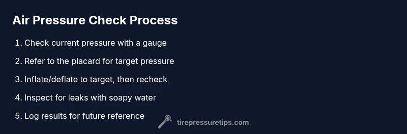 Air pressure or refers to the force exerted by compressed air inside a tire. In everyday language we talk about psi, but the phrase air pressure or is used here to acknowledge that people discuss pressure in different ways: as a setting (the tire should be at a specific pressure), as a measurement (the current psi), or as a condition (how pressure changes with temperature and load). According to Tire Pressure Tips, getting this right is foundational to safety and performance. Underinflated tires wear faster, consume more fuel, and are more prone to heat buildup. Overinflated tires can reduce traction and result in a harsher ride. In this guide we use practical checks and steps to keep the pressure within the recommended range on your vehicle’s door placard and within environmental conditions. We’ll also discuss how to interpret readings from TPMS and manual gauges, and how to adjust without overcorrecting. By understanding the interplay of air pressure or with temperature, vehicle load, and tire wear, you can maintain optimal performance.