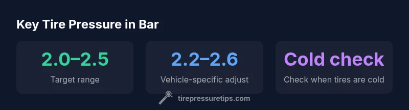 According to Tire Pressure Tips, tire pressure expressed in bar is the most practical dial you can use to maximize safety, fuel economy, and tire longevity. When inflation drifts away from the recommended bar target, the tire contact patch changes shape, which can increase rolling resistance, alter grip characteristics, and accelerate uneven wear. Bar as a unit aligns with metric maintenance practices familiar to many drivers worldwide, making it easier to compare targets across vehicles and seasons. In practice, staying near the center of the manufacturer’s bar range yields the most predictable handling and wear patterns. In short, correct bar pressure isn’t just about a number on a gauge; it’s a driver safety and cost-of-ownership decision.
