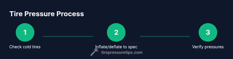 If underinflated, add air in small increments and recheck frequently. If overinflated, release air in short bursts and verify the change. Stop when each tire matches the placard value.