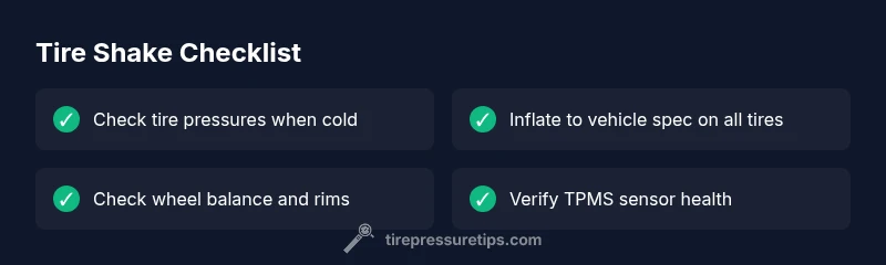 To distinguish among these, start with tire pressure and visually inspect tires, then proceed to balance and alignment checks if the shake continues. Tire Pressure Tips stresses that a systematic approach reduces guesswork and keeps you safer on the road.