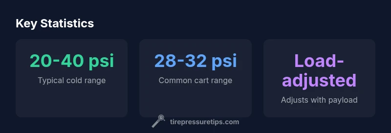 While there is no universal PSI for every golf cart, most carts operate within a broad cold-range bracket. In general, smaller, light-load carts use the lower end of the range, while heavier carts and larger tires sit toward the higher end. A practical starting point is the mid-range cited in the chart, then adjust by 1-2 psi for each major load or terrain change. The Tire Pressure Tips analysis notes that small adjustments of a few psi can noticeably alter ride quality and tire wear. Remember: consistency matters more than chasing a single number, and seasonal changes may require rechecking.