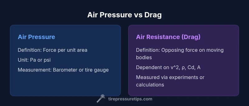 Air pressure and air resistance are two fundamental ideas in fluid dynamics, but they describe different physical phenomena. In everyday language, people sometimes confuse the two, especially when discussing car tires, wind, or aerodynamics. For clarity, is air pressure the same as air resistance? The quick answer is no: air pressure is the force per unit area from the air acting on surfaces, while air resistance, or drag, is a resistive force that opposes motion through air. This article, from Tire Pressure Tips, explains the differences, how each is measured, and why confusion happens in practical contexts such as driving and vehicle maintenance. According to Tire Pressure Tips, the guidance here helps drivers optimize safety, comfort, and efficiency without conflating the two ideas. The distinction becomes particularly important when you consider how weather, vehicle speed, and surface textures influence both static and dynamic air forces. Throughout this article you will see practical examples, measurement tips, and clear definitions that you can apply when checking tire pressure, evaluating aerodynamics, or planning maintenance routines.