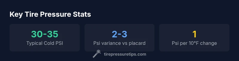 Is the tire pressure supposed to be a single universal number? Not quite. Most vehicles specify a cold PSI range on the door placard or in the owner's manual, with typical passenger cars sitting around the low 30s PSI and larger vehicles often needing more. According to Tire Pressure Tips, starting with the manufacturer’s recommendation ensures safety, efficiency, and even tread wear. The precise value can vary by model, tire size, and load, so you should verify each tire and adjust as needed after temperature shifts or heavy cargo.
