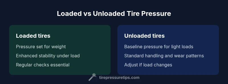 The phrase loaded vs unloaded tire pressure refers to how inflation needs change when a vehicle carries extra weight—whether from passengers, cargo, towing, or a trailer—versus normal driving conditions with no added load. In this context, loaded means tires are supporting more weight, while unloaded describes standard operation with the vehicle near its curb weight. The distinction matters because the tire contact patch—the area of the tire that actually touches the road—expands and contracts with load and pressure. When loaded, using the manufacturer’s load-adjusted pressures helps maintain the intended contact patch size, stability, and braking performance. According to Tire Pressure Tips, the relationship between weight, inflation, and the contact patch is a core factor in how your vehicle handles, how evenly tires wear, and how efficiently you use fuel. The goal is not to inflate to a single universal pressure but to apply the right pressure setting for the load condition you’re under. This is a practical topic for daily drivers who frequently transport people or cargo, and understanding it helps you maximize safety and efficiency without guessing.