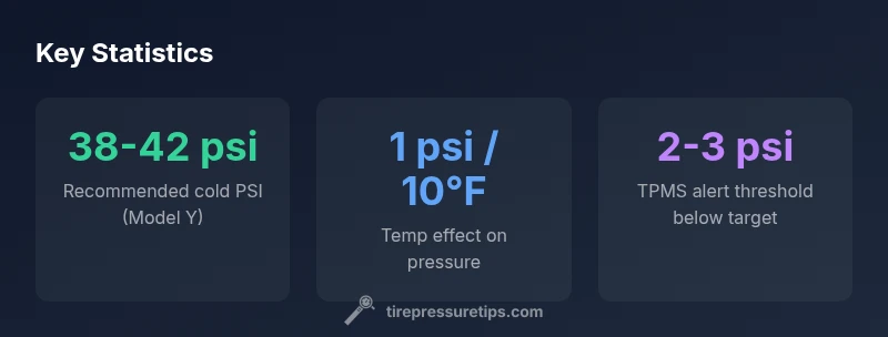 Understanding the model y tire pressure landscape\n\nmodel y tire pressure is more than a single number; it’s a guideline that balances safety, tire wear, and efficiency. The term model y tire pressure denotes the cold PSI recommended for the vehicle’s tires, typically listed on the driver-side door placard and in the owner’s manual. This starting point can shift based on wheel size, tire construction, trim level, and how heavily you load the vehicle. In practice, drivers should treat the placard as a baseline, then verify with a reliable gauge after the tires have cooled. The Tire Pressure Tips team notes that data from 2026 analyses consistently show better tread wear and more predictable handling when inflation stays close to the manufacturer’s spec. If you install aftermarket wheels or change tire types, re-check the target pressure because the reading can vary by a few PSI. Maintaining a deliberate inflation strategy reduces rolling resistance and protects the tire footprint over time.