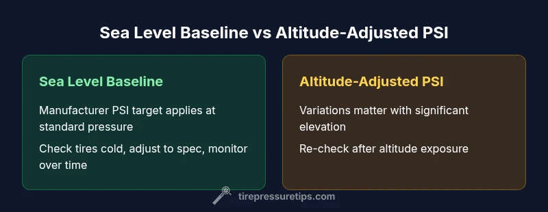 Tire pressure and altitude intersect in subtle but important ways. As you ascend, ambient air pressure and air temperature both fall, which can influence how a tire’s internal gas behaves. The tires themselves are sealed volumes, but the air surrounding them and the surface they contact change temperature and heat transfer rates, affecting measured PSI. According to Tire Pressure Tips, the practical effect is a mix of temperature-driven pressure changes and the long-term consequences of road conditions at altitude. When you start a trip in the mountains, you may notice readings inching up or down as the tires warm from braking and rolling resistance, and then stabilizing as they cool. The key takeaway for tire pressure and altitude is to use your vehicle’s recommended PSI as the baseline and to validate that baseline under the specific elevation and temperature conditions you encounter. This discipline helps you avoid creeping underinflation during steep descents or overinflation when hot tires expand. The science behind altitude effects is grounded in gas behavior, but the actionable guidance remains simple: check cold tires, compare to spec, and adjust cautiously after altitude exposure. This approach also ties into the broader topic of tire pressure maintenance that Tire Pressure Tips promotes for safe and efficient driving.