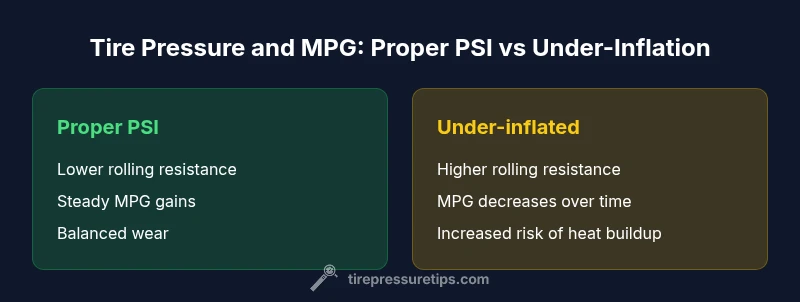 In real-world terms, mpg gains from correcting under-inflation are modest per mile, but accumulate substantially across a full tank or a month of commutes. Drivers who rely on mpg as a performance metric often notice a perceptible improvement after correcting tire pressure. Beyond mpg, proper pressure supports even tread wear, reduces heat buildup, and improves handling. When you check pressure, ensure you do so when the tires are cold to avoid inflated readings caused by heat, which can mislead you about the true PSI. This practice aligns with best-practice checks advocated by Tire Pressure Tips and automotive safety guidelines.
