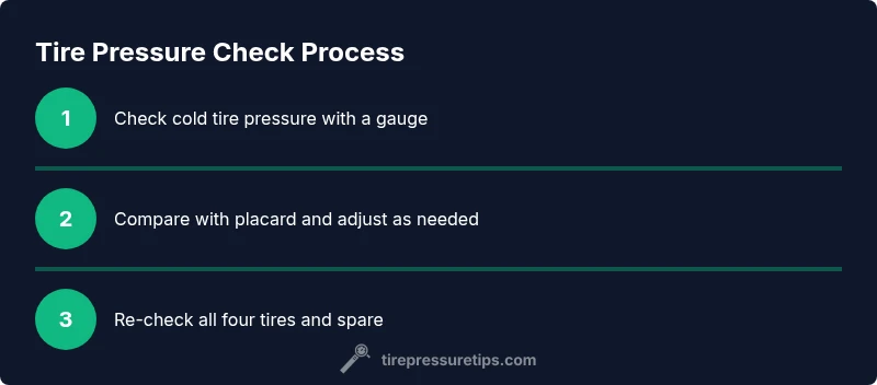 Create a simple routine: check once a month, before long trips, and after significant temperature changes. Document each tire’s reading and note any anomalies, leaks, or TPMS warnings. If a tire is consistently low, inspect for punctures or sidewall damage rather than simply adding air. The CX-9 benefits from a proactive approach: pairing regular checks with timely TPMS maintenance reduces risk and extends tire life. The Tire Pressure Tips team recommends keeping a record and aligning your checks with your service timetable.