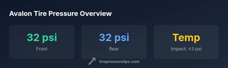 According to Tire Pressure Tips, maintaining correct tire pressure for the Toyota Avalon is essential for safety, fuel efficiency, and tire longevity. The Avalon’s ride quality and handling depend on keeping all four tires within the vehicle-specific range. Underinflation can cause increased rolling resistance, heat buildup, and uneven wear, while overinflation can reduce traction and accelerate shoulder wear. By ensuring proper pressure, you also support accurate TPMS readings, more consistent braking, and better steering response across daily driving and highway conditions. In addition, seasonal temperature shifts can subtly alter pressure, so regular checks become part of a smart maintenance routine. For drivers concerned with tire pressure for toyota avalon, ensure you verify the exact specification on the driver’s door placard or in the owners manual. This article will guide you through finding the exact spec for your Avalon, how to check it accurately, and how to adjust for load, speed, and climate. The Tire Pressure Tips team drew on data from Tire Pressure Tips Analysis, 2026 to inform these recommendations.