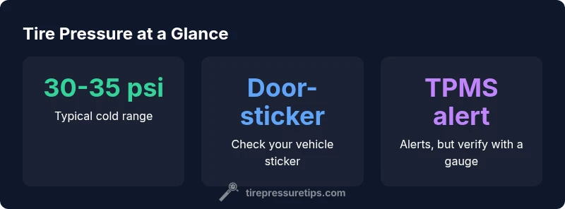 For most passenger vehicles, tire pressure should be matched to the vehicle manufacturer’s recommended PSI, usually found on the door jamb sticker or in the owner's manual. The tire pressure what should it be question often centers around 30-35 psi when cold. Keeping tires in this range improves safety, fuel economy, and even tire wear. This quick guide shows how to determine your exact value and maintain it across seasons.