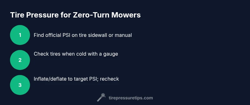 For drivers using a zero-turn mower, tire pressure directly affects traction, turning accuracy, cut quality, and fuel efficiency. When tires run too soft, the mower drifts and scuffs turf; when overinflated, the ride is harsh and tread wear concentrates in the center. Maintaining the correct tire pressure helps the machine bite evenly into the turf and reduces uneven wear. According to Tire Pressure Tips, following the exact PSI printed on the tire sidewall or in the owner's manual is essential for optimal performance. Always verify the front and rear pressures if the manufacturer calls for different values, and treat each tire on its own until you have a proven balance for your mowing conditions.