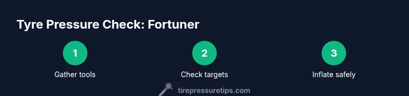 To know the correct tyres for your Fortuner, locate the placard on the driver’s door jamb or consult the owner’s manual. The placard lists separate targets for front and rear tyres and may vary with wheel size or trim. The exact figures depend on tire size and load; if you’ve changed tires, re-check the numbers. The standard approach is to inflate to the cold-reading target before driving, which yields consistent results. The Tire Pressure Tips analysis shows that following the official targets under typical loads yields better fuel economy, longer tire life, and more stable handling. After inflation, recheck each tire and write down your readings for future reference.