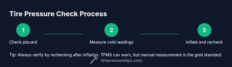 A TPMS warning can indicate a slow leak or sensor issue. Verify with a manual check and inspect sensors if readings don’t align with the placard values.