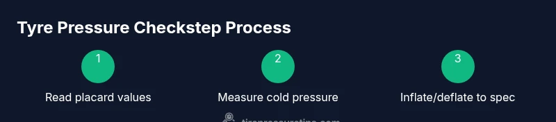 Using your gauge and air pump, adjust each tyre to the exact cold inflation pressure specified on the placard. Recheck after adjustments to confirm accuracy.