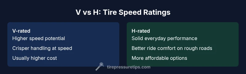 V-rated tires support higher-speed performance and may offer crisper handling at highway speeds, while H-rated tires are designed for typical highway driving. The choice should align with vehicle specifications and your driving habits. Tire Pressure Tips recommends verifying compatibility with load index and real-world conditions.