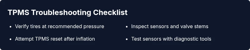 - Check tire pressure first, then TPMS health