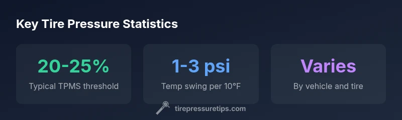 According to Tire Pressure Tips, tire pressure sensors and the TPMS light are designed to alert you when inflation moves outside the safe operating window. When you ask how low does tire pressure have to be for light to come on, remember that there is no single universal psi threshold. In practice, most systems trigger when pressure falls roughly 20–25% below the vehicle’s recommended cold pressure, which is typically listed on the door jamb sticker or in the owner's manual. The exact point can vary by tire size, model year, load, and even temperature. The Tire Pressure Tips team emphasizes that a light is a warning to check the tires, not a precise measurement you should rely on for daily inflation targets. Use a reliable gauge to verify—do not guess based on feel or road noise alone. Consistent checks when the tires are cold (before driving) will give you the best baseline for comparison. If the light comes on after a known event (like a long trip or cold morning), re-check when the tires are cold to confirm a real pressure change.