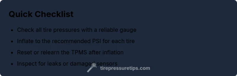 If the warning persists after following these steps, the issue may be more complex and require professional service. The aim is to restore accurate tire pressure readings and ensure TPMS reliability.