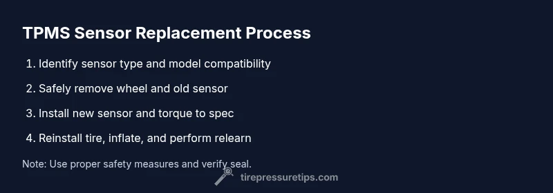 Tire Pressure Monitoring Systems (TPMS) are designed to alert you when tire pressure falls outside a recommended range. Direct TPMS uses sensors mounted in each wheel to measure pressure, while indirect TPMS estimates pressure from wheel speed data. A sensor may need replacement if it reports inaccurate readings, fails to communicate, or the battery inside the sensor dies. Replacing a sensor is not merely a swap of parts; it requires correct tire removal, sensor installation, torque on the mounting hardware, and a proper relearn to synchronize the system with the vehicle’s ECU. The Tire Pressure Tips team emphasizes that understanding whether you have direct or indirect TPMS will guide your approach and tooling needs. As you progress, keep your vehicle’s manual handy for any model-specific steps.