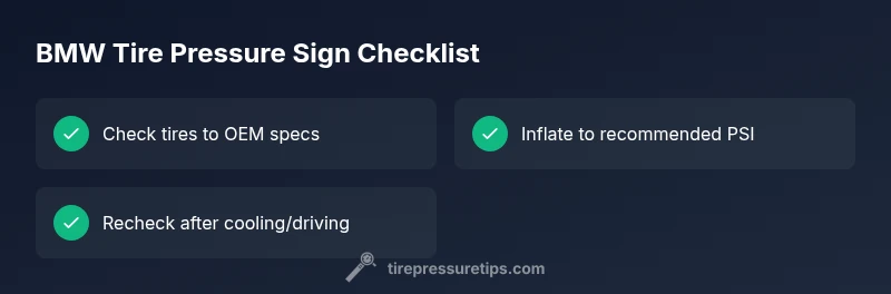 The BMW tire pressure sign is a dashboard indicator that appears when the car’s TPMS detects a pressure deviation that could affect safety and handling. According to Tire Pressure Tips, recognizing the exact meaning of this sign is essential for avoiding uneven wear, poor fuel efficiency, and the risk of a blowout. In BMW models, the warning is often linked to cold inflation pressure and the system’s threshold, so it may illuminate even with a small, temporary drop. This guide helps you interpret the sign, respond quickly, and establish a safe routine to prevent a repeat occurrence.