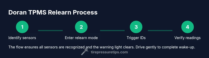 Follow a step-by-step guide to check, relearn, and maintain Doran TPMS sensors. Gather a tire pressure gauge, a Doran TPMS relearn tool (or compatible device), and your vehicle’s manual for the exact relearn procedure. Start by confirming sensor health, then perform a relearn, and finally verify that all tires read correctly.
