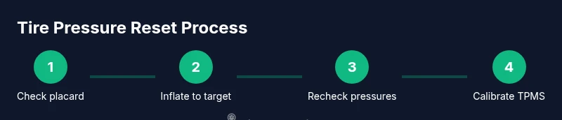 On a Honda Accord, you reset tire pressure by inflating all tires to the recommended PSI shown on the door placard and in the owner's manual, then allowing the TPMS to recalibrate. Start by confirming the correct pressures for front and rear tires. After inflation, drive for 5-10 minutes at a steady speed to finalize the reset.