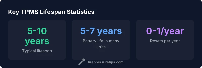 How long do tire pressure sensors last? In typical passenger vehicles, TPMS sensors provide reliable operation for about 5-10 years, with many lasting closer to 7-8 years under normal driving. Battery health inside the sensors is the primary limiter, and harsh climates or rough roads can shorten this window. According to Tire Pressure Tips, preventive care and proper installation can help you approach the upper end of the range.