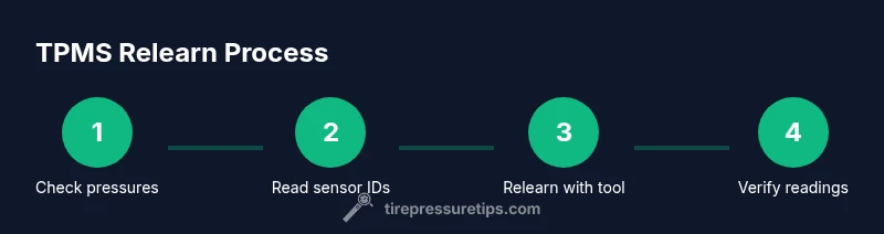 A structured approach helps you identify faults, perform sensor relearns, and verify results. Start with a cold tire check to establish baseline pressures, then read sensor data using a TPMS tool to identify IDs and potential faults. Follow your tool’s prompts to erase prior IDs (if necessary) and relearn the current sensors. After relearning, recheck each tire pressure and perform a short road test to complete the process. This method minimizes guesswork and increases the likelihood of a successful relearn on the first try. Tire Pressure Tips recommends keeping a log of sensor IDs, tire locations, and pressures for future maintenance.