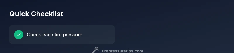 Inflate each tire to the exact cold-pressure specification from the placard. Avoid overinflating; use the gauge to verify.