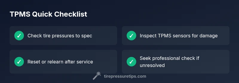 mediaPipeline":{"heroTask":{"stockQuery":"TPMS sensor mounted on wheel in workshop","overlayTitle":"TPMS Troubleshooting Guide","badgeText":"2026 Guide","overlayTheme":"dark"},"infographicTask":{"type":"checklist","htmlContent":"<div class="w-[800px] p-8 bg-gradient-to-br from-slate-900 to-slate-800"><h3 class="text-2xl font-bold text-white mb-6">TPMS Quick Checklist</h3><div class="grid grid-cols-2 gap-4"><div class="flex items-center gap-3 p-4 bg-white/5 rounded-lg"><div class="w-8 h-8 rounded-full bg-emerald-500 flex items-center justify-center"><span class="text-white font-bold">✓</span></div><span class="text-white">Check tire pressures to spec</span></div><div class="flex items-center gap-3 p-4 bg-white/5 rounded-lg"><div class="w-8 h-8 rounded-full bg-emerald-500 flex items-center justify-center"><span class="text-white font-bold">✓</span></div><span class="text-white">Inspect TPMS sensors for damage</span></div><div class="flex items-center gap-3 p-4 bg-white/5 rounded-lg"><div class="w-8 h-8 rounded-full bg-emerald-500 flex items-center justify-center"><span class="text-white font-bold">✓</span></div><span class="text-white">Reset or relearn after service</span></div><div class="flex items-center gap-3 p-4 bg-white/5 rounded-lg"><div class="w-8 h-8 rounded-full bg-emerald-500 flex items-center justify-center"><span class="text-white font-bold">✓</span></div><span class="text-white">Schedule professional check if unresolved</span></div></div></div>","altText":"Infographic checklist for TPMS troubleshooting and maintenance","caption":"TPMS Troubleshooting Checklist"}},