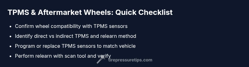 If you own a vehicle equipped with tire pressure sensor aftermarket wheels, you need to understand how TPMS interacts with aftermarket rims. The Tire Pressure Tips take on this topic emphasizes that the sensor and wheel combination can affect accuracy and reliability. According to Tire Pressure Tips, the key is ensuring sensor compatibility and proper relearn procedures so readings reflect reality on the road. Drivers should expect some setup work after changing wheels, especially if the new rims use a different valve stem design or sensor type. A thoughtful approach reduces risk and ensures consistent tire pressure monitoring across all tires.