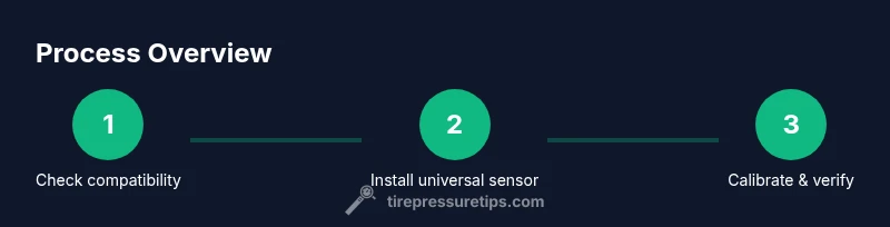 Installation typically involves removing the wheel, replacing the old valve stem or sensor with the universal unit, and reseating the tire. For many universal kits, you’ll need basic hand tools, a valve core tool, and a pressure gauge for cross-checks. The overall process can be completed in a few steps: verify compatibility, deflate the tire if needed, remove the old component, install the universal sensor, reseat the tire, and verify the TPMS pairing. Expect some variation between wheel brands and TPMS systems; adapters or spacers may be required for certain rims. The process becomes straightforward with the right kit and proper safety precautions.