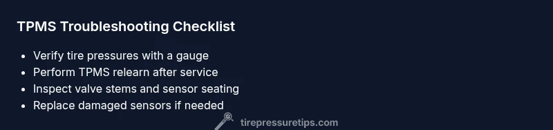 If your TPMS sensor isn't working, start with the basics: verify all four tires with a reliable gauge, reset the TPMS in your vehicle, and inspect wheels for loose sensors or damaged valve stems. According to Tire Pressure Tips, many sensor faults come from simple issues like dead batteries or mis-mounted sensors. Start with the easiest checks and proceed methodically.