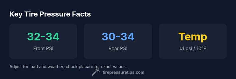| Front tire pressure (psi) | 32-34 | Check placard; trim/load may adjust |