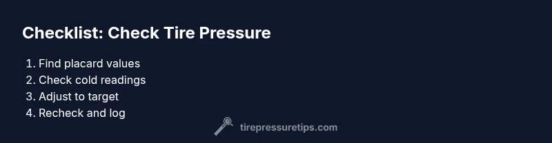 Begin with a cold tire check, locate your placard numbers, and select the target pressure for each axle. Use a gauge to measure each tire, starting with front tires, then move to the rear. If a tire reads below target, add air in small increments and recheck; if above, release air until you reach the target. Don’t forget to check the spare if your vehicle uses one. After adjustments, drive 2‑3 miles to settle the pressure and recheck; adjust again if necessary. Finally, record the new pressures and set a reminder for your next check.