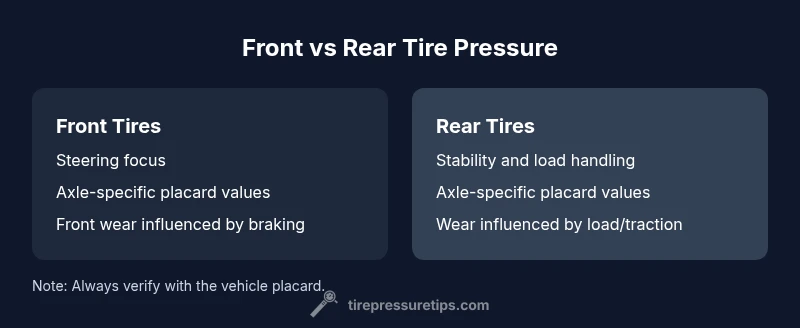 Explore how front vs rear tire pressure affects handling, wear, and safety. Learn axle-specific guidance, how to read placards, and when to adjust pressure for load, speed, and season.